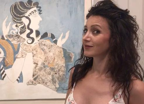 È nata nel 1978 a Creta, dove cresce immersa nei miti della Grecia antica grazie alle narrazioni dal padre e le visite ai numerosi siti archeologici, tra i quali il primo e più importante è il Palazzo di Cnosso ed il relativo museo.